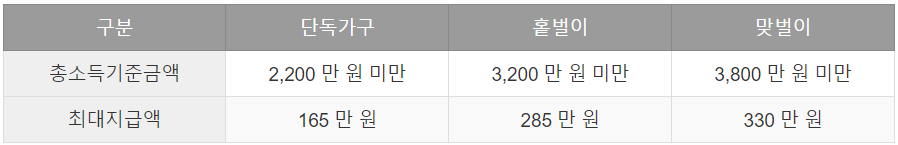 | 3. 신청 조건 | 재산 기준 2억 4천 만 원 (※ 주택과 자동차 등 가구의 모든 재산 총합 기준) |