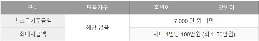 | 4. 소득 요건 별 지급액 | * 근로 장려금 ![]() * 자녀 장려금 ![]() |