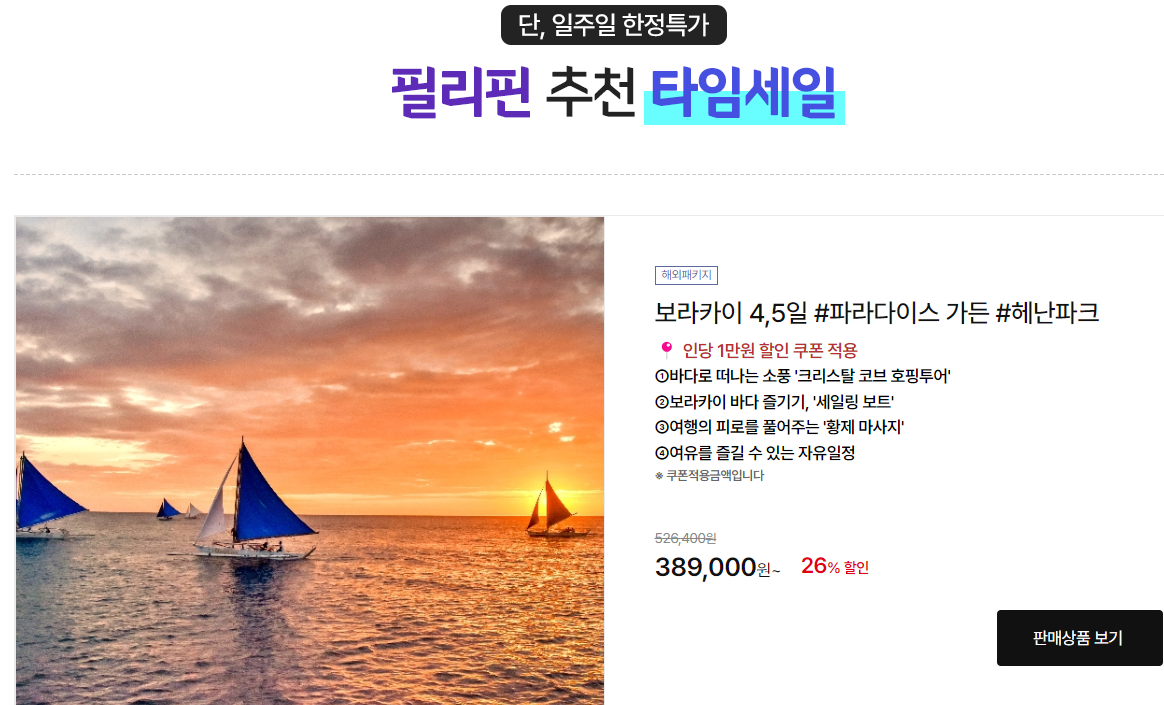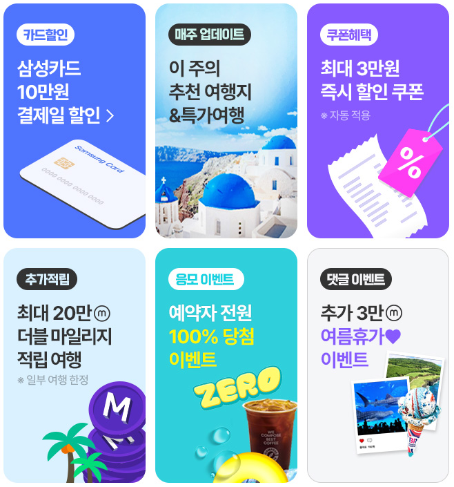 매주 월요일 10시 오픈이니 한 번씩 들어가서 좋은 혜택의 상품이 없는 지 확인하시고 미리밀 여름 휴가 계획해두면 좋을 것 같습니다.